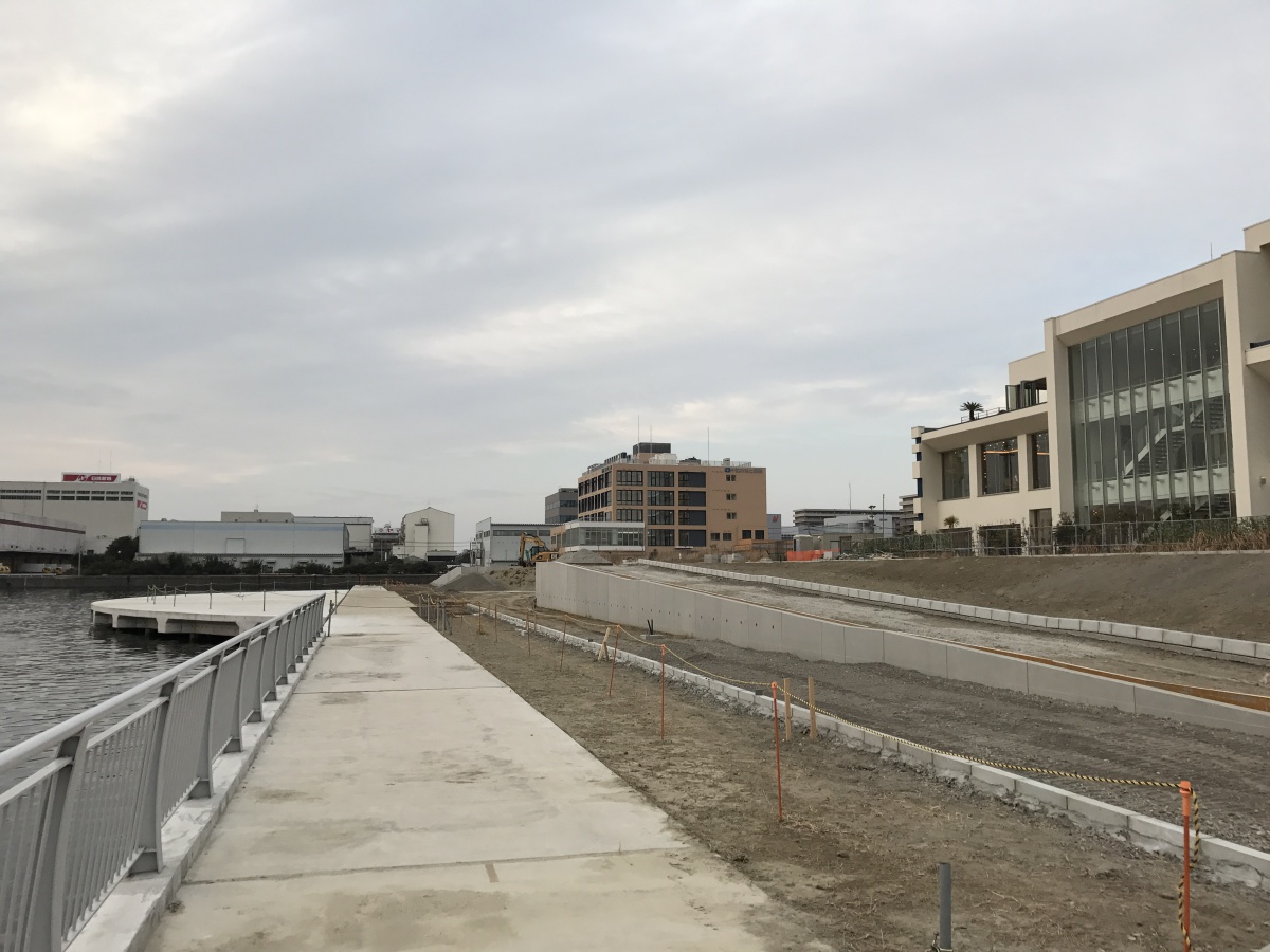 ケーズハーバー・旅客船桟橋の公園の残存工事場所。
