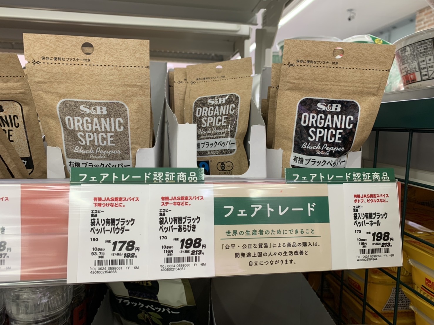 マルエツ宮野木店にて、S&Bのフェアトレードのオーガニックスパイスを見つけました。