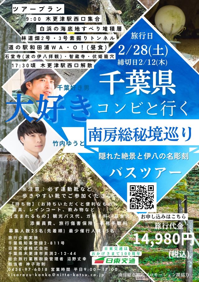 千葉県大好きコンビと行く南房総秘境巡り~隠れた絶景と伊八の名彫刻~バスツアー