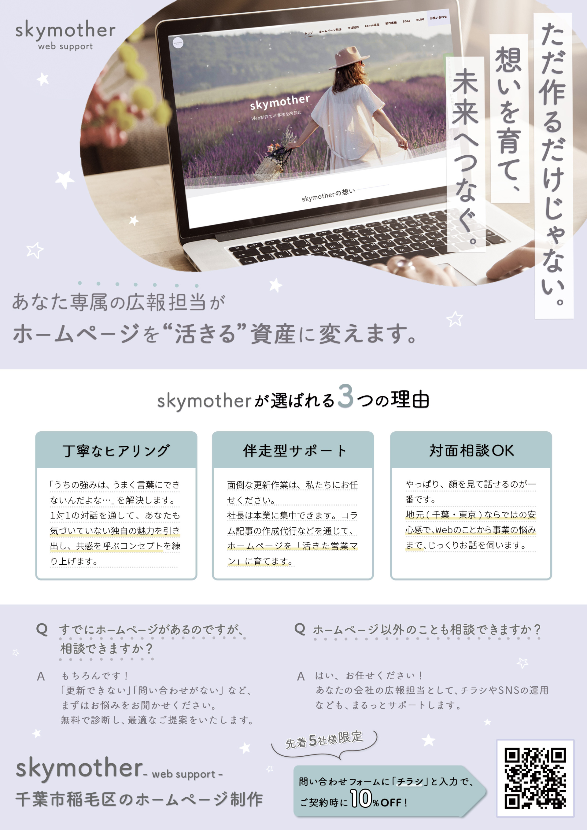千葉市稲毛区でホームページを制作しているskymotherです。