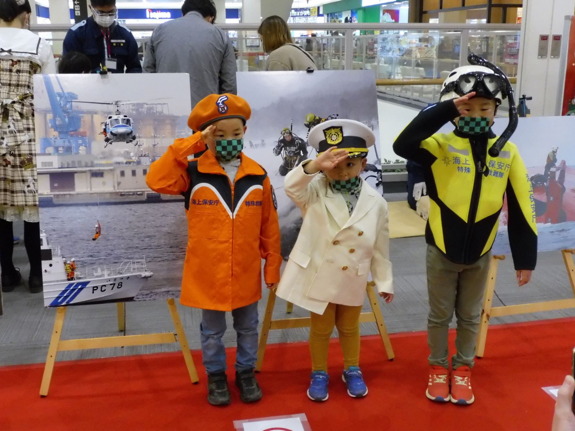 4月2日(土)にイオンモール柏で行われた「おしごと体験イベント」に千葉海上保安部も参加してきました。海上保安庁ブースでは、パンフレットの配布やDVD放映のほか油採取体験、心肺蘇生体験、制服試着を実施し大盛況でした。 海上保安庁のマスコットキャラクター「うみまるくん」も登場し体験に来てくれたみんなと写真を撮りました。 これからも海上保安庁のことをより多くの方々に知ってもらうために、様々なイベントに参加していきたいと思います!