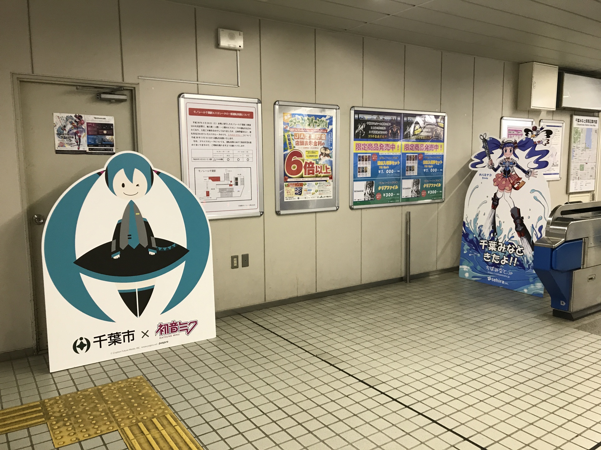 2018年夏、千葉都市モノレールの千葉みなと駅改札横に、3か月間くらい我が物顔で鎮座する等身大チバミナコちゃん。