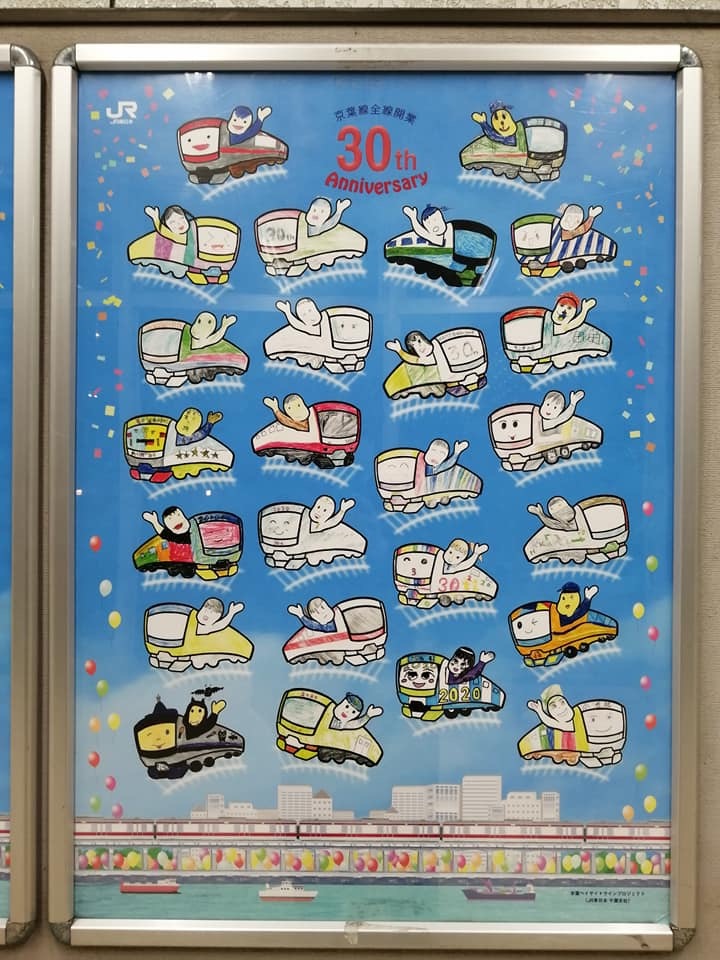 【JR千葉みなと駅】京葉線全線開通30周年記念で塗り絵を展示中