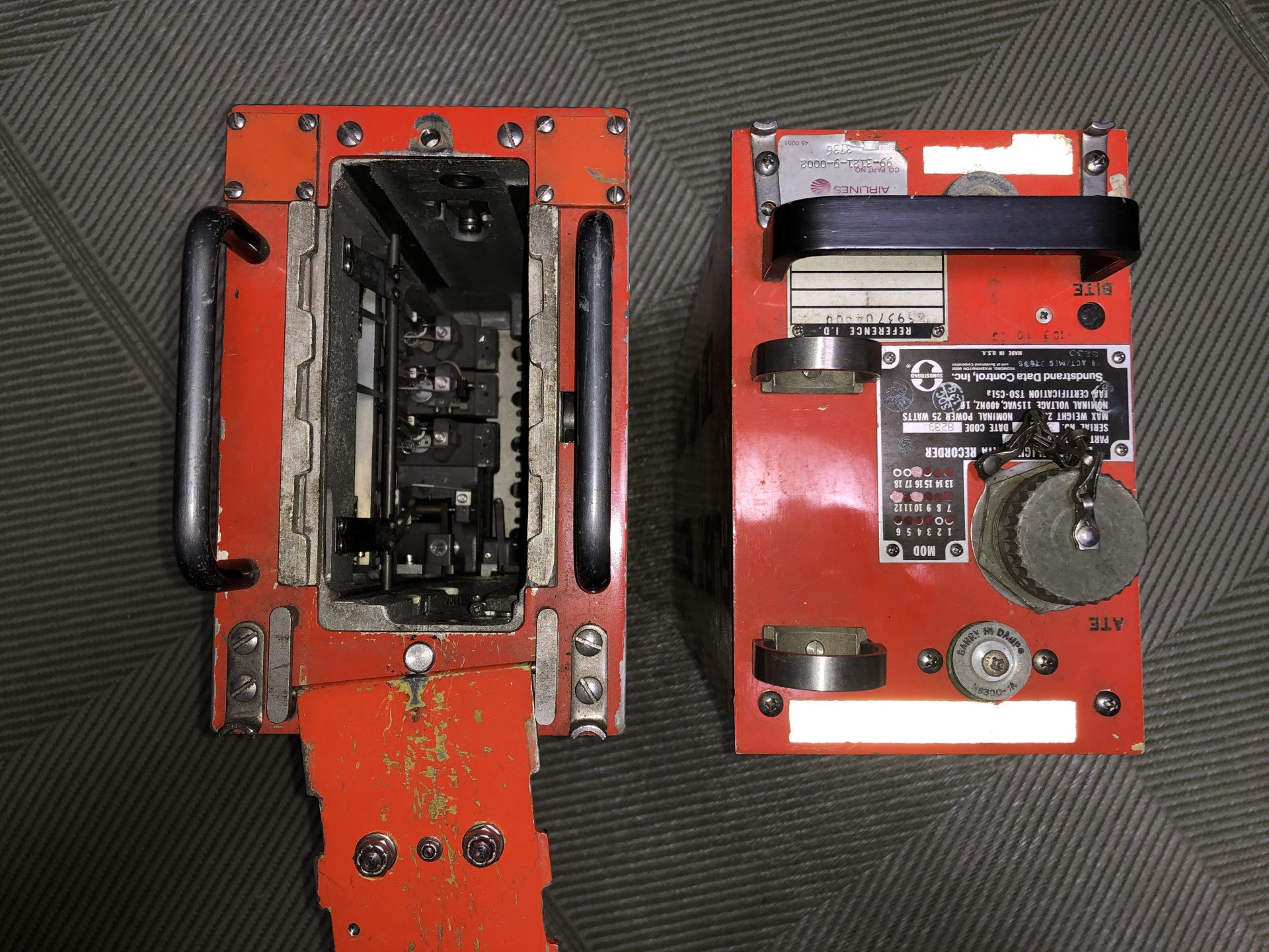 収集品のフライトレコーダーは2台有ります。一台はカートリッジ式の記憶媒体に針で記録するアナログタイプでもう一台はハードディスクに記録するデジタル式です。
