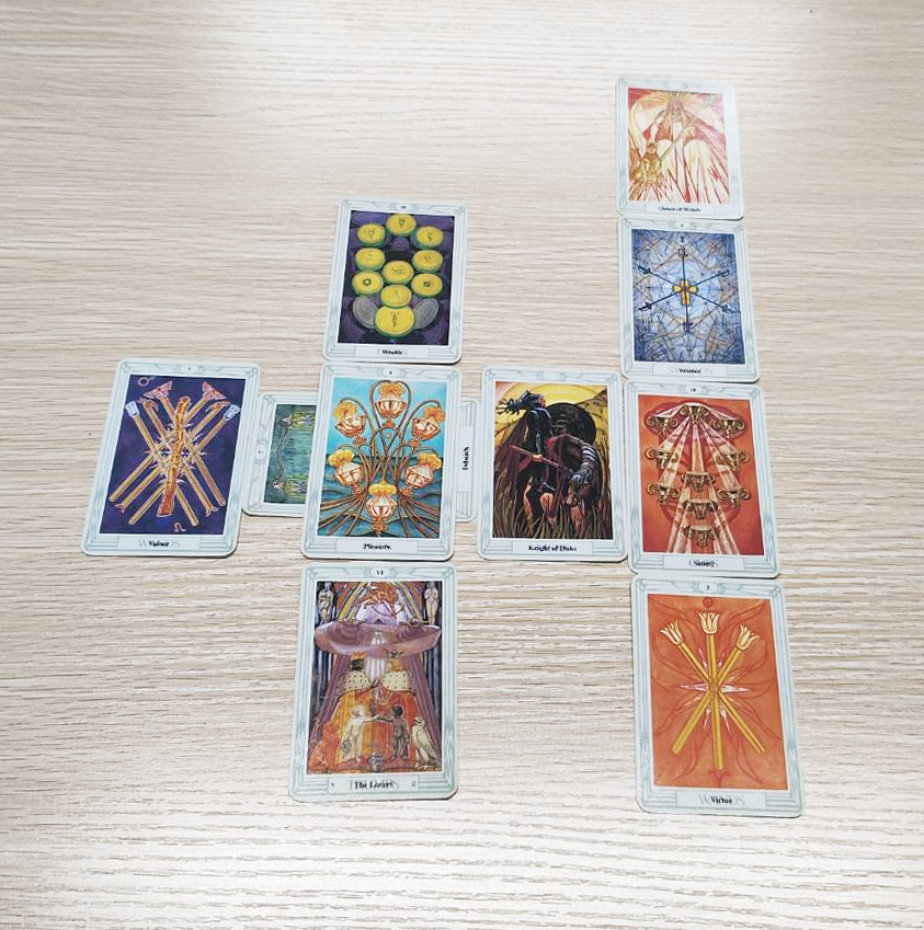 明けましておめでとうございます。直感のカードリーダー、長田豊子です。今年、使用するカードは「トートタロット」。別名「直感のタロット」と呼ばれています。一般的なタロットカードはカードの逆位置をみて複雑な読み取り方をします。本紙で使う「直感のタロット」は逆位置を取らず、カードのイラストを頭を空にして眺め、直感の閃きを受け取ってリーディングします。