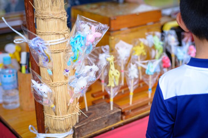 あめ細工の実演販売です。