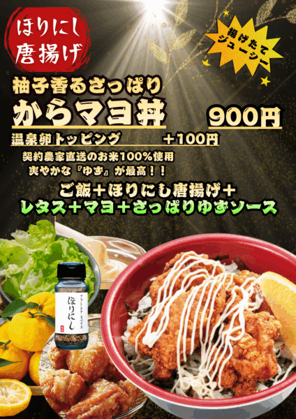 牛タンのトロトロ煮込み、千葉県産元気豚のソーセージやローストポークを使った丼物やホットドッグを提供します。
