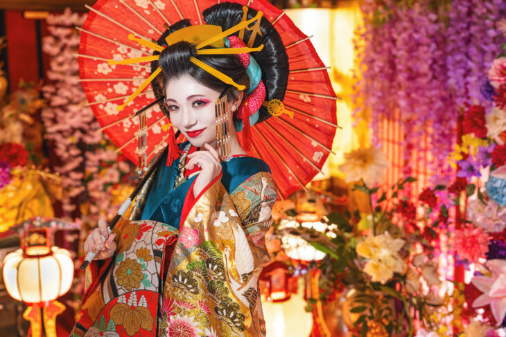花魁と一緒に無料でスマホ写真が撮れるイベントを開催します。優雅で華麗な花魁と写真が撮れるこの機会をお見逃しなく!