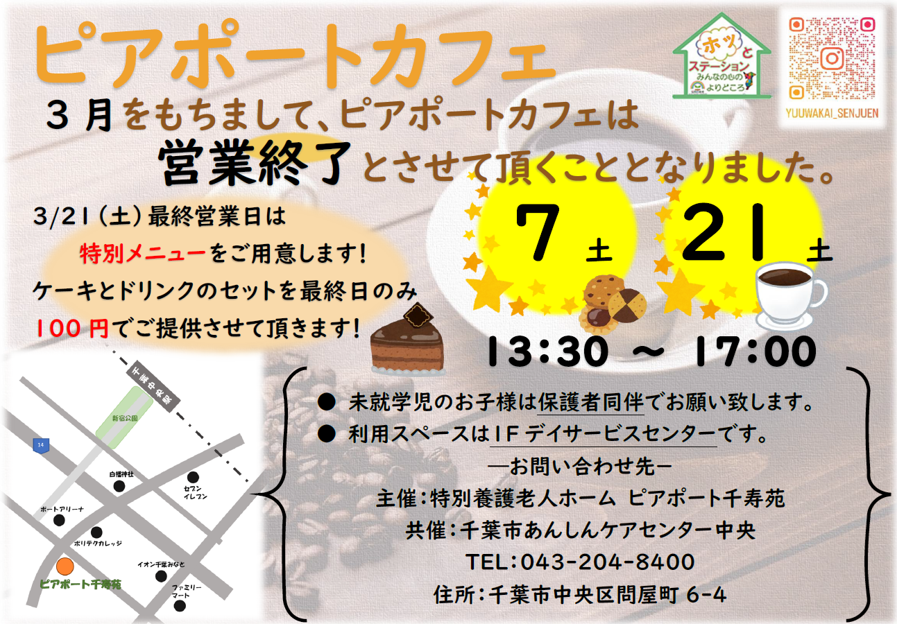 ピアポートカフェは3月をもちまして営業を終了とさせて頂くことになりました。